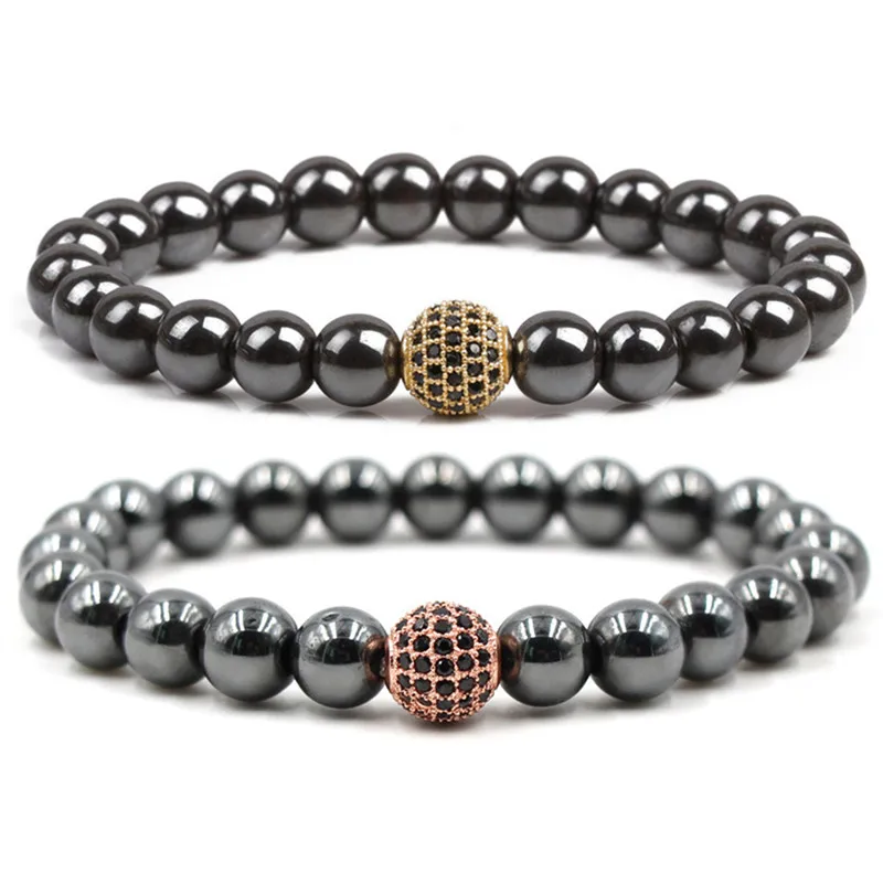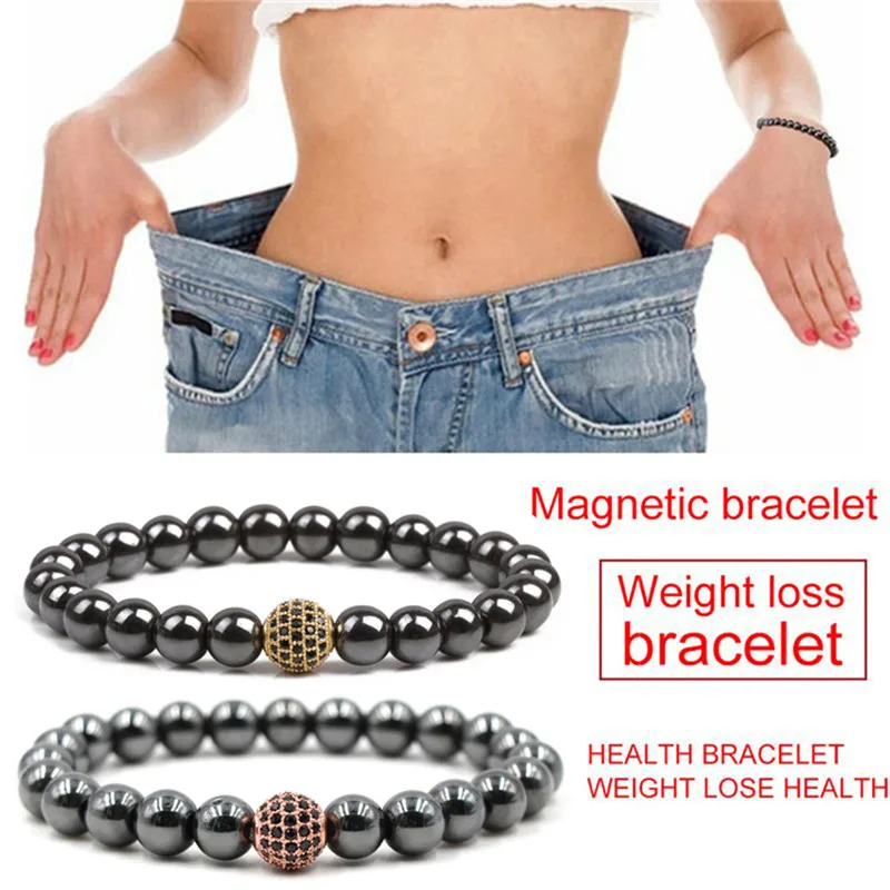 Black Magnetic Bracelet Beads Hematite Stone Therapy Health Care Magnet Women 18cm-20cm Hematite Beads Bracelet Men's Jewelry