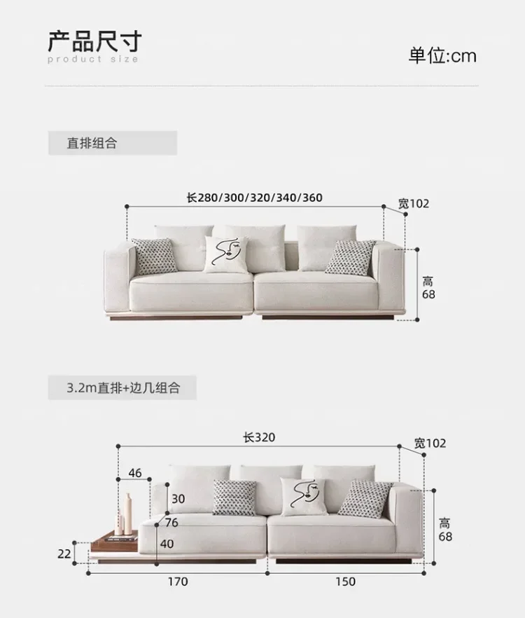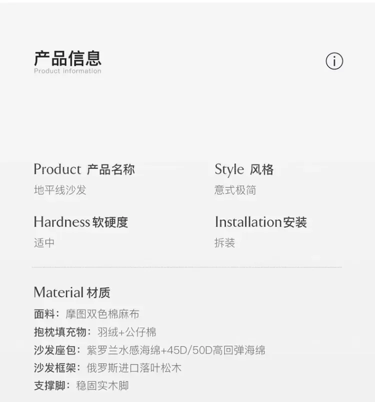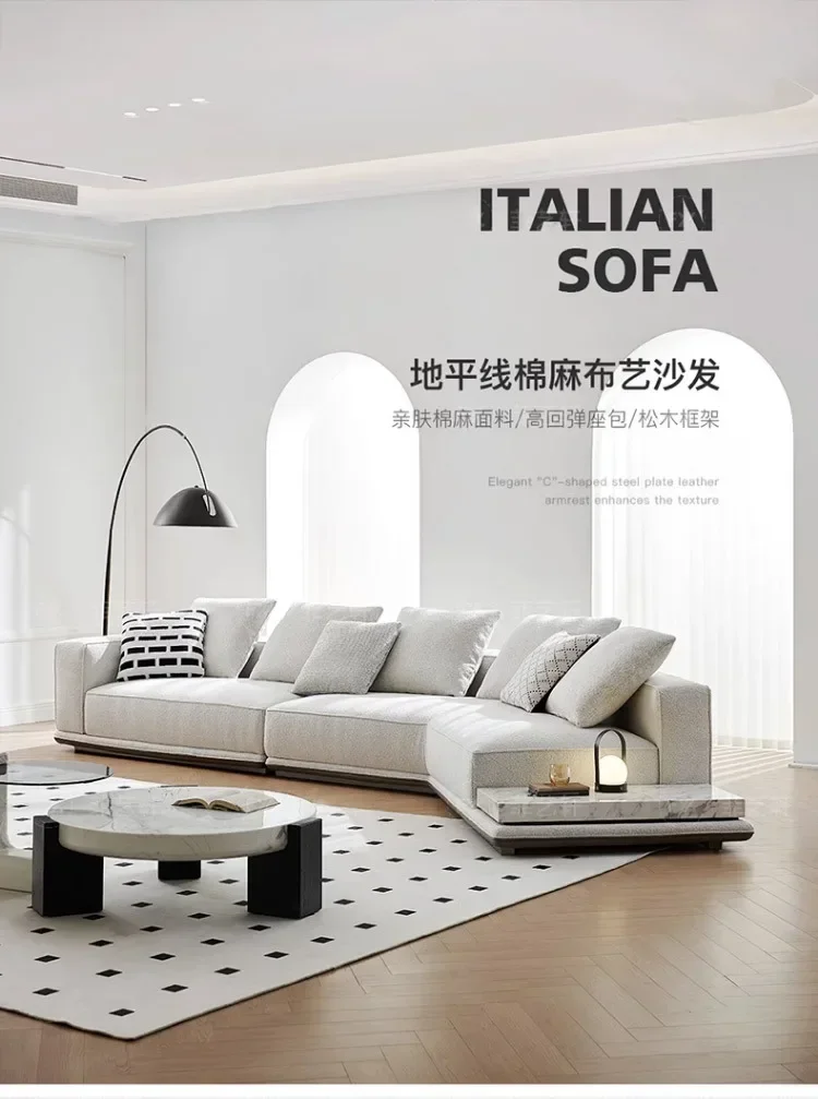 Horizon cotton and linen fabric sofa designer simple modern small apartment Italian minimalist living room with three seats in a