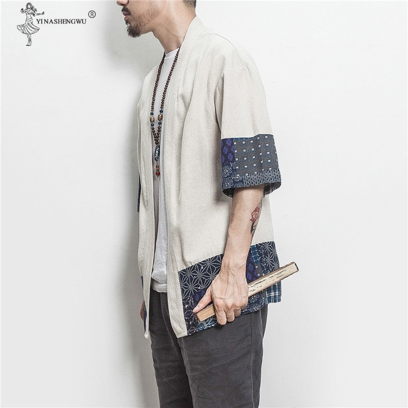 Japanese Kimono Men Cardigan Streetwear Yukata Male Shirt Haori Mens Kimono Shirt Traditional Japanese Samurai Clothing 5XL