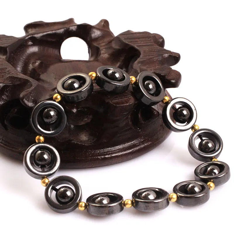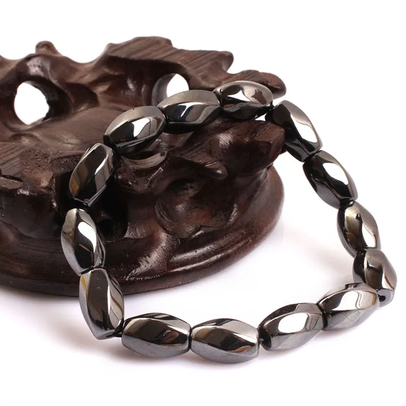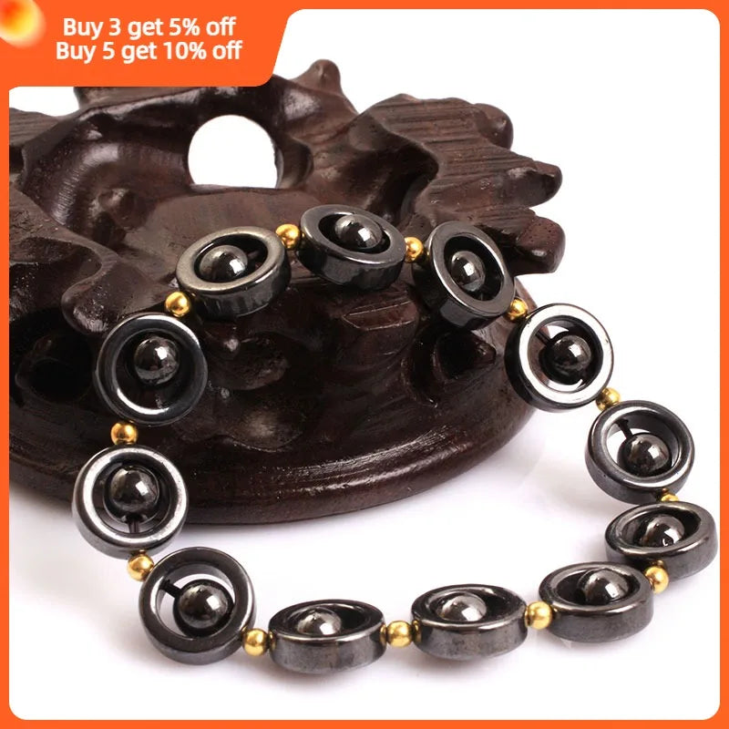 Magnetic Bracelet Beads Hematite Stone Therapy Health Care Magnet Cube Hematite Beads Bracelet For Men's Jewelry Gifts 7 inch