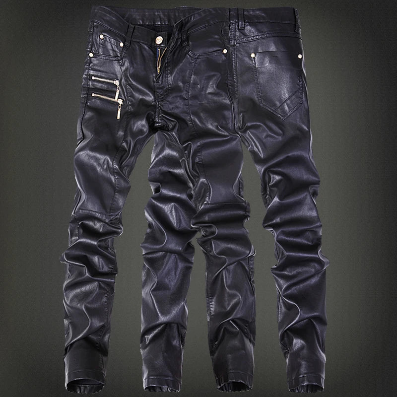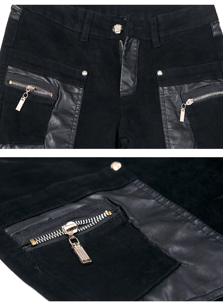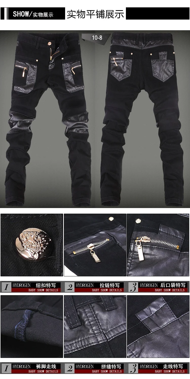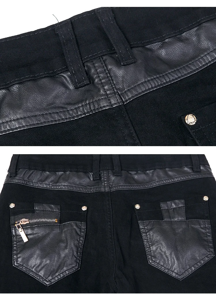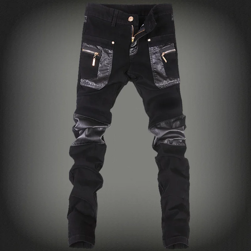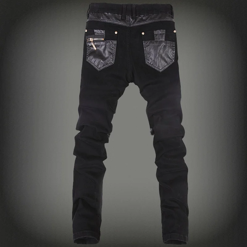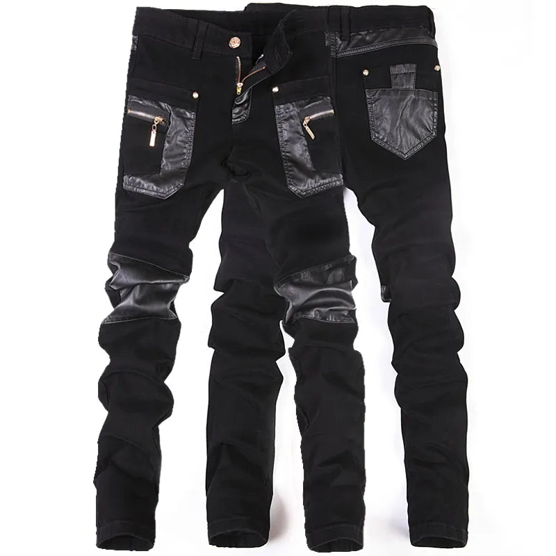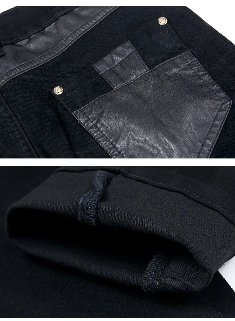 New Fashion Men Leather Pants Patchwork Casual Skinny Men's Motorcycle Jeans High Quality Men's Slim Trousers Jeans Size 28-36